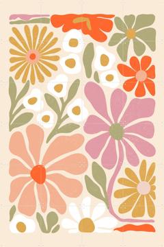 Imagine a burst of color brightening up your space—this is "Flower Power Orange Pink" by Katarzyna Gąsiorowska & Various. It’s a playful mix of retro vibes and modern flair, perfect for your living room or bedroom. The vibrant flowers and pastel background will bring a smile to your face every time you walk by.