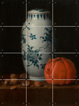 Simon LuttichuysStilleven met Chinese dekselpot, hazelnoten en sinaasappel