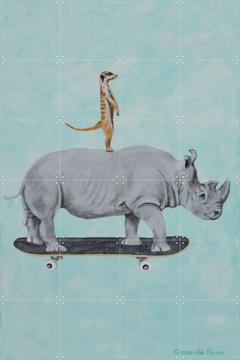 'Rhinoceros and meerkat skateboarding' by Coco de Paris