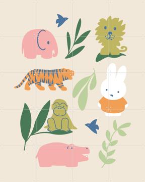 Make your wall more beautiful with IXXI's Miffy Jungle from the Miffy collection. This beautiful masterpiece is a great addition to your interior. Are you going for something grand and sweeping by hanging your Miffy Jungle wall-filling, or do you prefer something subtler, placing this Miffy-IXXI small and refined on your wall? The choice is completely yours because you can order your IXXI in any size you want. From a Miffy Jungle in poster size (40x60cm) to as big as your door or even as wallpaper: because your Miffy Jungle-IXXI consists of separate cards, there's no limit to the size of your IXXI. The only limit is the size of your wall!