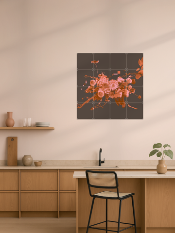 Envie d’apporter une touche chaleureuse et artistique à vos murs ? Découvrez "Autumn Ash" de Wesley van der Heijden, une œuvre abstraite pleine de vie et de couleurs chaudes. Imaginez des roses et des dahlias stylisés, avec une palette de tons orangés et marrons, se fondant dans un arrière-plan géométrique moderne.