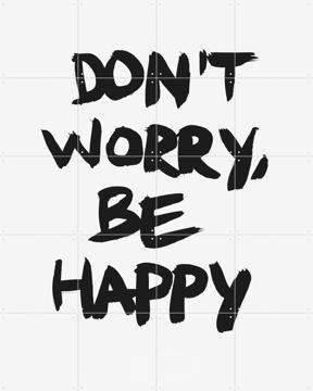 Maak je muur mooier met IXXI's Don't worry be happy van Marcus Kraft. Dit mooie meesterwerk is een toffe toevoeging aan je interieur. Ga jij voor groots en meeslepend en hang je jouw Don't worry be happy wandvullend op, of zoek je iets subtielers en komt deze Marcus Kraft-IXXI klein & fijn aan je muur? De keuze is helemaal aan jou, want je kunt jouw IXXI bestellen in elke maat die je wil. Van een Don't worry be happy op poster formaat (40x60cm), tot zo groot als je deur of zelfs als behang: omdat jouw Don't worry be happy-IXXI uit losse kaarten bestaat, zit aan het formaat van je IXXI geen limiet. De enige limiet is de grootte van je muur!