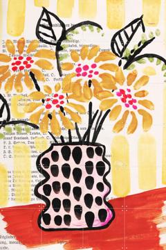 Imagine walking into your living room and being greeted by a burst of sunshine with our "Sunflowers in a Vase" by Annick & Various. This vibrant piece captures the cheerful essence of sunflowers, with their bright yellow petals and playful brush strokes. The vase, with its polka-dot design, adds a touch of whimsy to the scene.