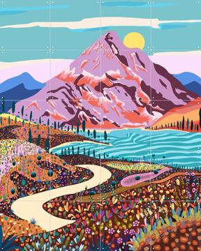 The artwork features a charming path winding through a field of flowers, leading up to majestic mountains. The colors are so lively, it feels like you’re walking through a digital wonderland. Plus, it’s super easy to hang, thanks to IXXI’s clever design. No nails or tools needed!