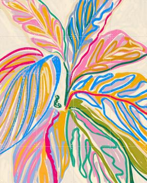Imagine a burst of color brightening up your living room—the "Rhythms of Bloom" wall art piece by Uma Gokhale & Various is just that! This playful, abstract artwork, featuring a dynamic mix of vibrant hues and leaf-like shapes, is perfect for adding a splash of joy to any space.