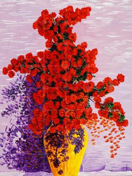 Imagine a splash of vibrant red flowers brightening up your space—this is "Blooming Red" by Zurab Dariali. Picture a stunning bouquet in a yellow vase, set against a dreamy purple backdrop. It’s like a burst of life in your living room, dining room, or even as a hallway centerpiece.
